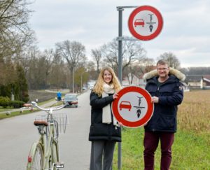 L’amministrazione comunale di Ingolstadt , nel Land della Baviera in Germania, ha deciso posizionare lungo una via del paese il segnale di divieto di sorpassare bici e moto da parte degli altri veicoli in una strada dove la larghezza della carreggiata non è sufficiente a effettuare un sorpasso in totale sicurezza. Da dicembre questo cartello stradale serve a proteggere i ciclisti. A causa della larghezza ridotta della carreggiata, non è possibile sorpassare i ciclisti con un’auto mantenendo una distanza minima di 1,5 metri nella via Antoniusschwaige. Tuttavia, ci sono sempre situazioni molto pericolose in cui i conducenti cercano di sorpassare i ciclisti.