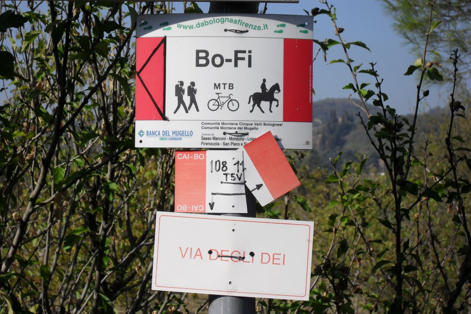 unnamedLa Via degli Dei è un percorso di circa 125 km che collega Bologna e Firenze attraversando gli  Appennini. Costruita dai romani come strada militare di importanza strategica, oggi il percorso è molto rovinato ed in alcuni punti quasi scompare coperto dalla vegetazione. Nel corso dei secoli la strada è stata percorsa da eserciti, viandanti, mercanti e pellegrini che si spostavano da nord a sud della penisola o viceversa. Lungo il tragitto si toccano il Monte Adone, il Monte Venere, il Monte Lario… da qui il nome di Via degli Dei.