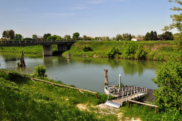 Superata Fratta Polesine, la pista ciclabile Adige-Po si accosta al Canal Bianco e lo segue attraversando il centro abitato di Frassinelle Polesine e sfiorando il territorio di Arquà Polesine. Volendo si può fare una piccola deviazione per visitare il Castello Estense che domina il paese. Mancano ormai solo 7 km all’arrivo, non resta che attraversare il canale verso sud e quindi raggiungere Polesella sulle sponde del Po.